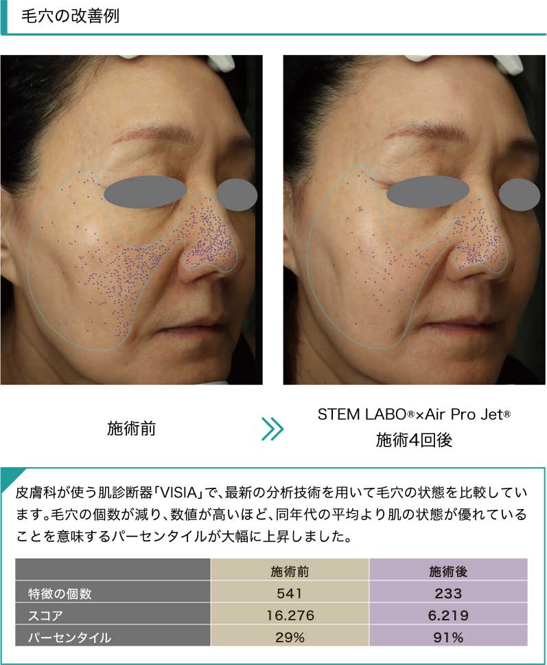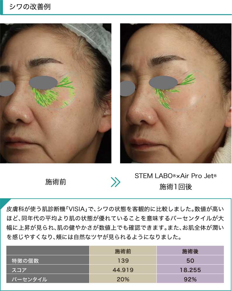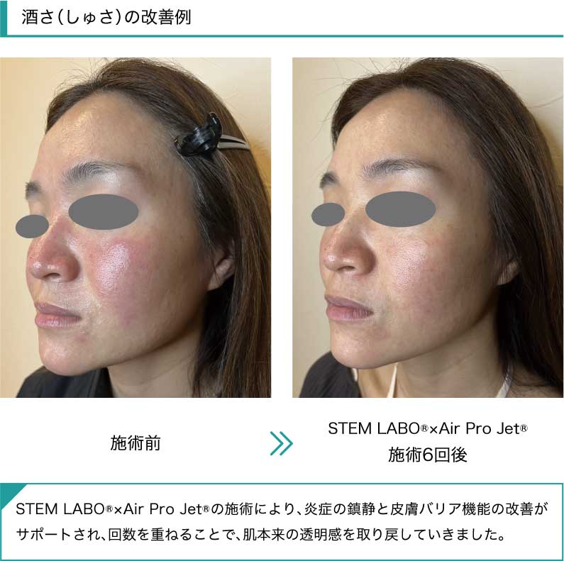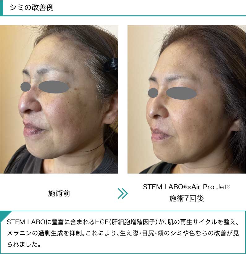 Air Pro Jet®︎は、マッハ1.32の超音速高圧で皮膚内部へ美容成分を導入します。高品質なSTEM LABO®︎(幹細胞培養上清液)との併用で、肌に負担なく美肌成分を経皮導入でき、様々なお肌のお悩みを改善。肌質のタイプを問わずに施術可能です。保湿・リフティング・トーンアップ・毛穴改善 ・ウェルエイジング効果・ニキビ改善・アトピー性皮膚炎改善・AGA治療など、美容クリニックで行っていた施術を、たった15分ほどの隙間時間でケアが可能になりました。是非、この最新の超音速技術でウェルエイジングを体感してみてください。
